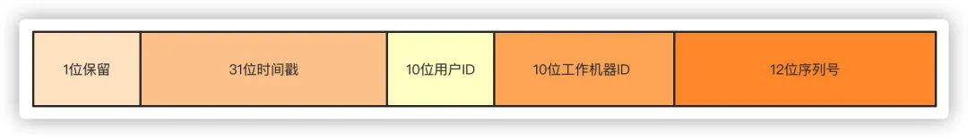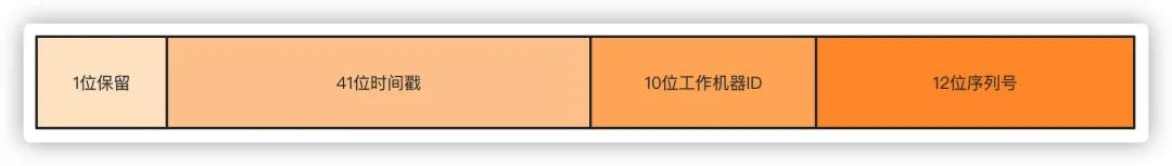 第一位不使用,默认都是0,41位时间戳精确到毫秒,可以容纳69年的时间,10位工作机器ID高5位是数据中心ID,低5位是节点ID,12位序列号每个节点每毫秒累加,累计可以达到2^12 4096个ID。