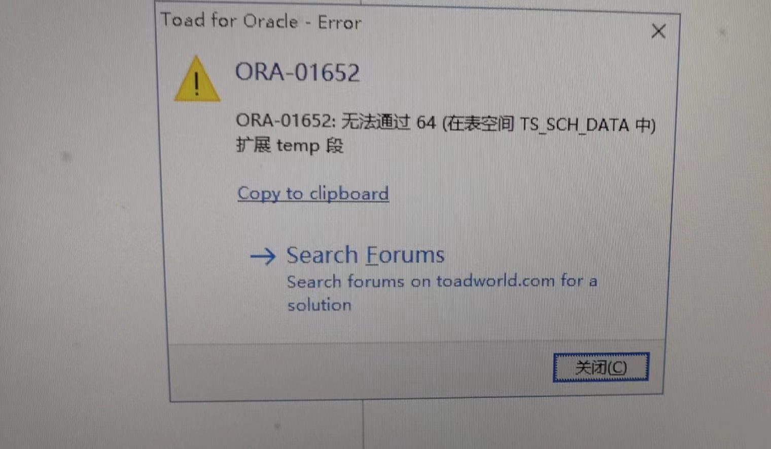 一开始看到问题,很自然的以为是用户的temp表空间满了,检查发现该用户使用的temp表空间一直没有很高的使用率。仔细观察报错,发现图中报错的TS_SCH_DATA表空间并不是一个临时表空间,而是一个永久表空间,遂产生疑问,为什么在永久表空间上也会出现扩展临时段的错误?