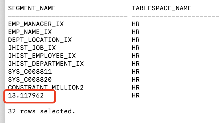 检查dba_segments中的情况: