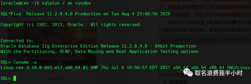 dul是oracle原厂推出的非常规的恢复工具,他是按照db_block_size,去扫描被truncate表所在表空间的数据文件中的每一个block,如果这个block的对象id是误truncate表之前该表的object_id的话,就把里面的数据利用工具抽取出来,从而实现数据恢复。由于dul工具暂无法获取,这里使用了别人的测试案例,该案例演示了将误truncate的表恢复回来。