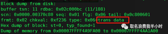 再次dump一个非段头块,这里继续dump前面选择的11号文件188号块