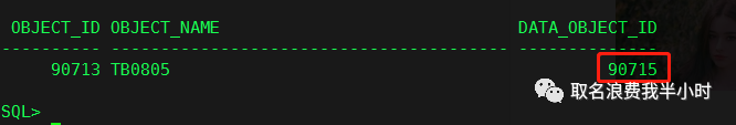 | select object_id,object_name,data_object_id from dba_objects where object_name='TB0805'; |