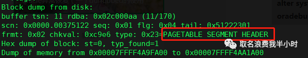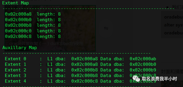 可以发现,与前面我们对这个块dump时的内容是一样的,到这里我们就基本确认了truncate动作只是清除extent map映射关系,而实际的数据文件以及其中的块的信息是没有被清理的。