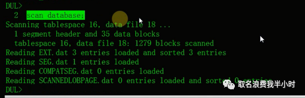 scan database;这一步结束会生成两个文件SEG.dat(记录了遇到的段头),EXT.dat(哪些extent是属于这张表的)