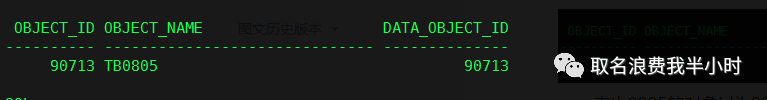 select object_id,object_name,data_object_id from dba_objects where object_name='TB0805'; |