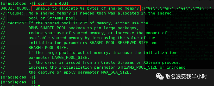 进入正题,如果我们的系统遭遇ora-4031的报错我们该如何处理呢?首先我们先来看一下ora-4031报错的官方解释: