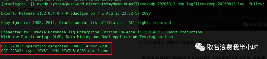 接下来我们执行数据泵全库备份,你觉得会发生什么呢?