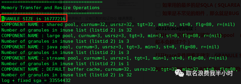 通过GRANULE SIZE关键字搜索trace文件,可以看到GRANULE SIZE=16M