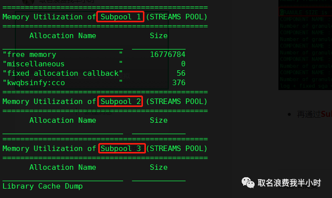 再通过Subpool 关键字搜索trace文件,由于之前设置的参数 "_KGHDSIDX_COUNT"=3 所以这里有三个subpool: