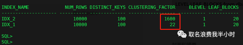 正是索引IDX_2的聚簇因子为1600,太大了,导致cbo在评估执行计划的时候,计算出全表扫描的cost要小于走索引idx_t02的cost。所以在有索引的情况下,cbo选择了走全表扫描。