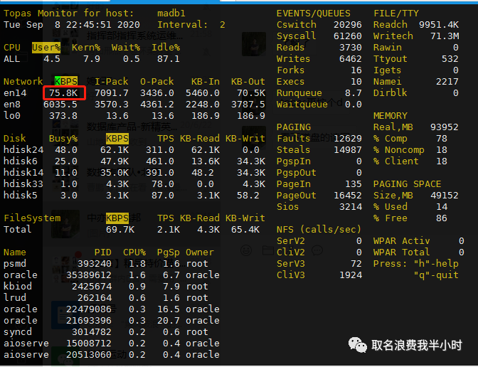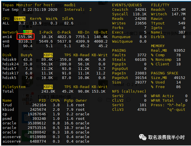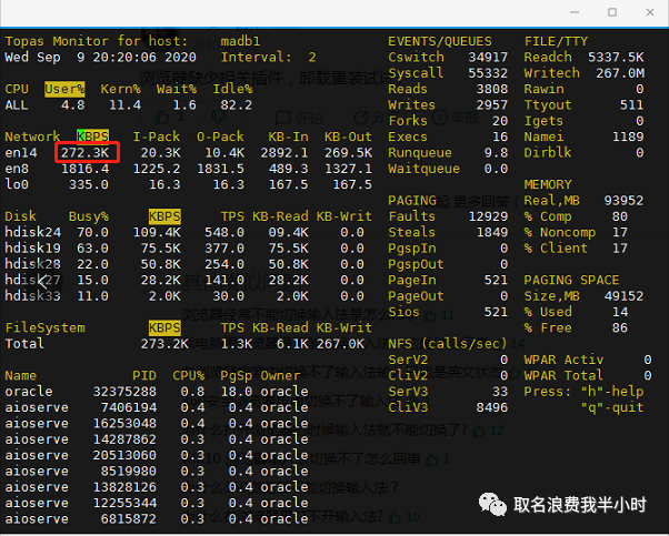 rman备份的时候,的确是开启了4个并行,至此问题解决,但还有一个疑惑的点,最后我们再回到文件拷贝测试的那一部分,明明都是万兆网络,明明都是单进程在干活,为什么14G的文件,一体机到NAS存储的拷贝只需要42秒,而AIX到NAS存储的拷贝却要240秒呢?