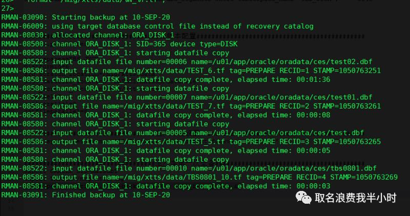 注意如果源端为rac环境,那么rman_trace.log需要放在共享存储上。