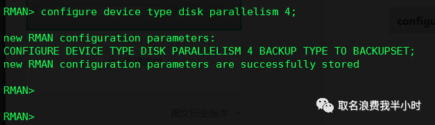 将rman备份的并行度参数修改为4: