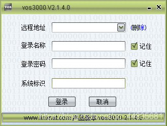 先使用账号信息登录到VOS客户端中,以下的配置包括不限于VOS3000 V2.1.4.0版本,以上高版本都适用。