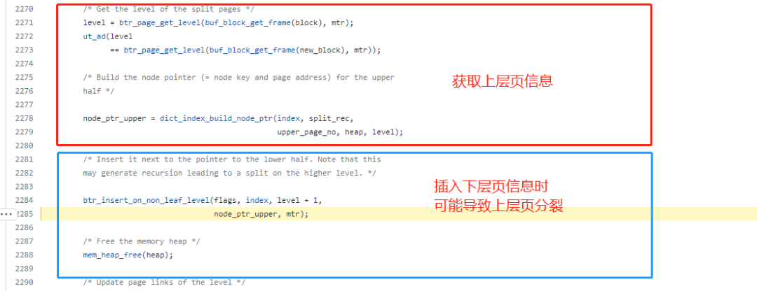 代码内容:https://github.com/mysql/mysql-server/blob/mysql-5.7.30/storage/innobase/btr/btr0btr.cc#L2165