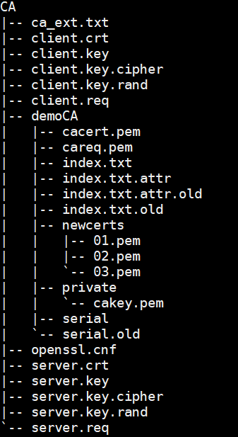 Certificate Details: Serial Number: 3 (0x3) Validity Not Before: May 15 08:41:46 2020 GMT Not After : May 13 08:41:46 2030 GMT Subject: countryName = CN stateOrProvinceName = SZ organizationName = HW organizationalUnitName = GS commonName = 127.0.0.1 X509v3 extensions: X509v3 Basic Constraints: CA:FALSE Certificate is to be certified until May 13 08:41:46 2030 GMT (3650 days) Sign the certificate? [y/n]:y 1 out of 1 certificate requests certified, commit? [y/n]y–至此,相关证书及密钥已生成,($GAUSSHOME/CA)内容如下: