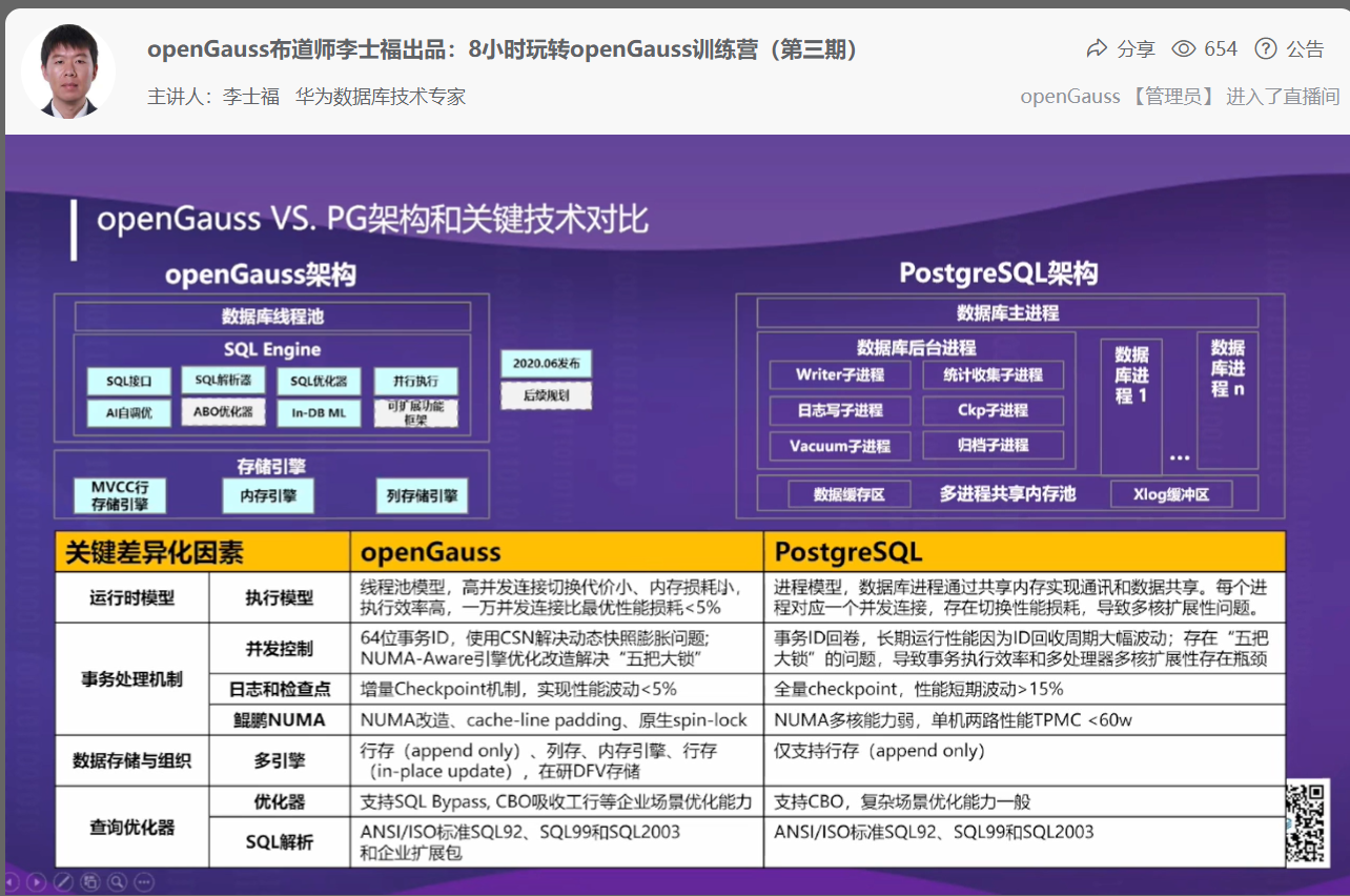 中美科技战、本土企业被制裁、自主可控的要求,种种背景下,国产产品和技术雨后春笋般发布,国产数据库产品当中,openGauss、OB、PingCAP、KINGBASE、GBASE、TDSQL、Polar、DM、GoldenDB、翰高、星环、热璞等等,数不胜数,庆幸国产力量的不断发展壮大,也在思考在学习路上到底该跟着哪一派的路子走,往小了说是为了强大自身能力,往大了说是为了国产自主的发展,增添一分力所能及的力量。曾经的想法是,基于占据半壁江山以上市场的成功产品如O记,深入学习技能,获取高级认证,习得一定的拳脚功夫,同时考取国考高级工程师,增强内功,掌握万变不离其宗的能力。在此基础上,根据市场情况、企业营收和能力等等,选择自己心仪的学习对象,借着这次实惠慢慢的openGuass训练营,准备迈入国产数据库学习门槛。