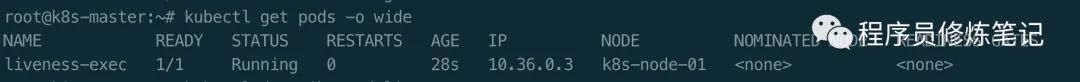 $ kubectl apply -f exec-liveness.yaml$ kubectl get pods -o wide$ kubectl describe pod liveness-exec