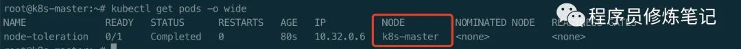 通过上图可以看出,我们通过污点容忍,node-toleration这个Pod成功被调度到了master节点上。