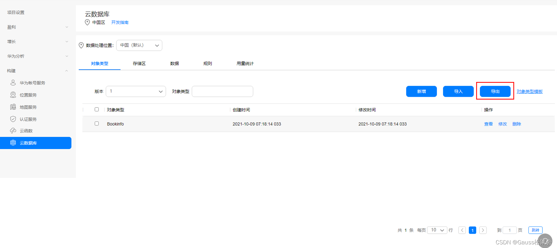 创建完成后返回对象类型列表中,可以查看已创建的对象类型。单击“导出”。