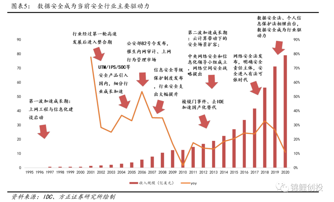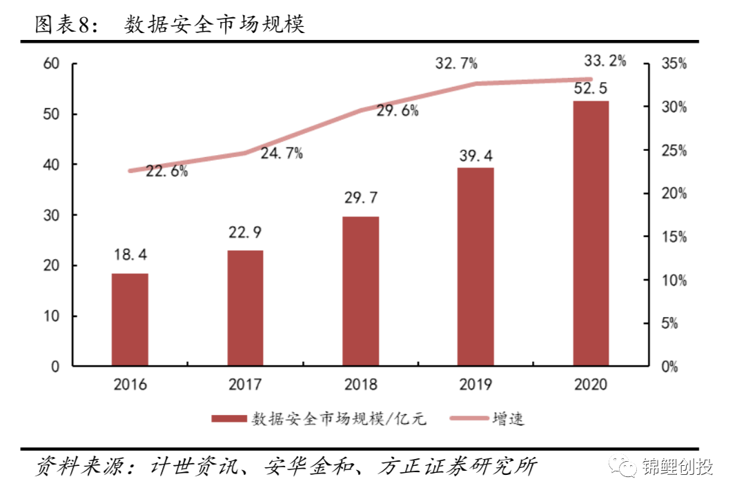 数据安全作为网络安全行业景气度最高的赛道之一,市场规模有望在近年达到百亿量级。
