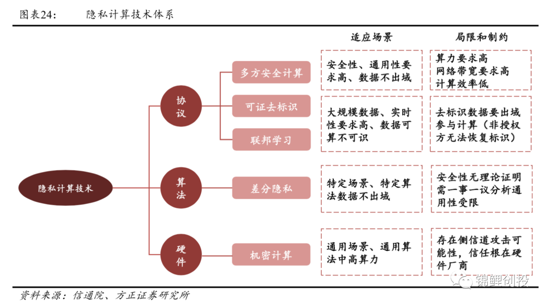 1)隐私计算是近年来最具代表性的数据安全新技术,隐私计算的不断成熟为数据交易,数据信托等新模式奠定了基础,并带来了数据安全市场全新的商业机会;
