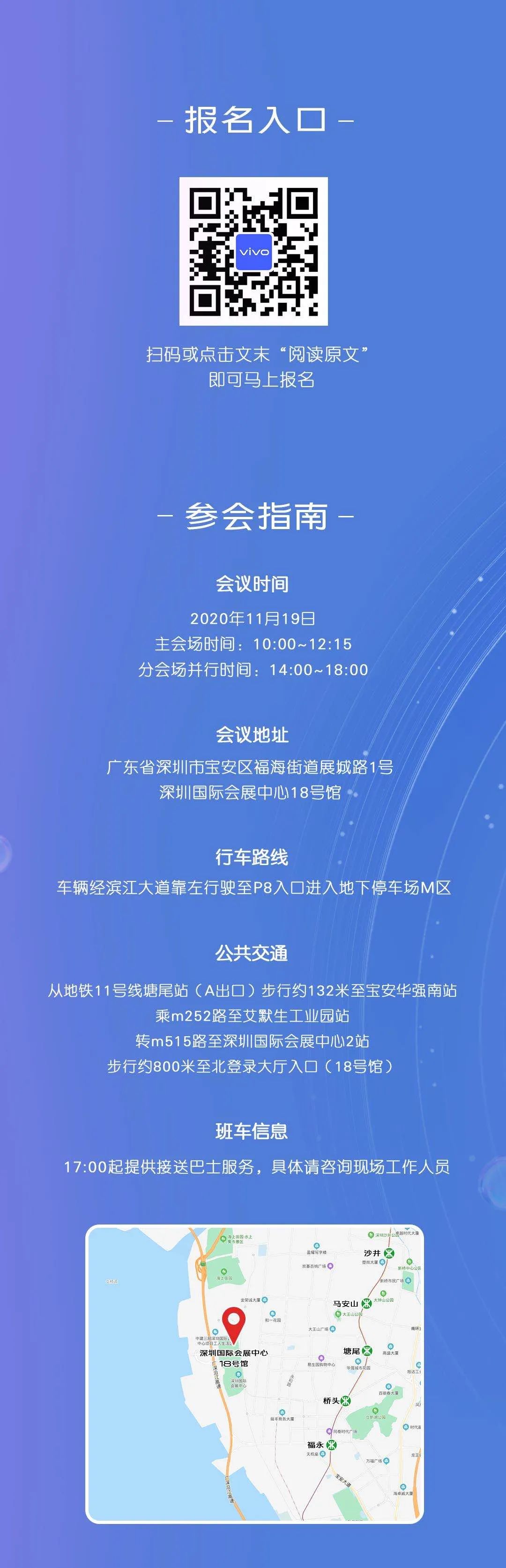 2020 vivo开发者大会,将于2020年11月19日在深圳国际会展中心18号馆举行。vivo 开发者大会是 vivo 一年一度面向科技、互联网行业及合作伙伴举办的大型会议。