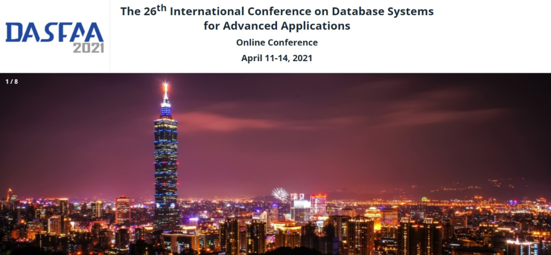 第26届面向高级应用的数据库系统国际会议(DASFAA 2021)于2021年4月11日在中国台北举行。由于全球疫情影响,参会人员采取线上方式参与。DASFAA是中国计算机学会推荐的B类国际会议,自1996年创办以来,一直是数据库领域的重要国际会议,每年汇集了数据库、数据挖掘、云计算等领域的最新研究成果,是来自学术界、商业界和工业界的数据库研究人员、开发人员和用户之间的技术演示和讨论的重要论坛。第一次DASFAA活动在德国柏林举行(1996年)。之后继续前往德国海德堡(1997年)、美国纽约(1998年)、中国香港(2001年)、英国伦敦(2000年)、意大利米兰(2001年)、法国巴黎(2002年)、日本京都(2003年)、韩国济州岛(2004年)、中国北京(2005年)、新加坡(2006年)、泰国曼谷(2007年)、印度新德里(2008年)、澳大利亚布里斯班(2009年)、日本筑波(2010年)、中国香港(2011年)、韩国釜山(2012年)、中国武汉(2013年)、印度尼西亚巴厘岛(2014年)、越南河内(2015年)、美国德克萨斯州达拉斯(2016年)、中国苏州(2017年)、澳大利亚黄金海岸(2018年)、泰国清迈(2019年)和韩国济州岛(2020年)。去年,DASFAA在中国台北以在线会议的形式举行,得到了台湾大学和中兴大学的支持。最终,98篇提交的论文被选为完整论文,另外还有34篇为短论文。主要主题包括大数据管理、数据库机器学习、图数据管理、图和社交网络分析、文本和数据挖掘、社交网络中的数据管理、推荐系统、搜索和推荐技术、数据语义和数据集成、众包、空间数据管理、网络嵌入、序列和时间数据处理、时间和空间数据库、大规模知识管理、RDF和知识图谱、社交网络和安全、安全、隐私和信任、医疗数据挖掘、生物和健康信息学、查询处理与优化、文本数据库、搜索与信息检索、信息集成、信息推荐、多媒体数据库、多媒体数据处理、分布式计算、云数据管理等领域。