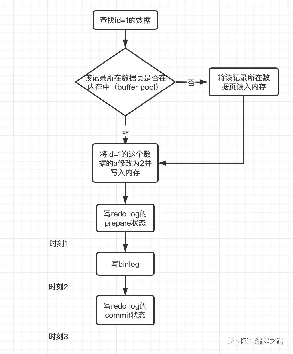 时刻1和时刻2我们一起说下,当在时刻1或时刻2时mysql宕机了,重启后发现redolog中只有prepare状态没有commit,会根据对应事务id去binlog里(在binlog中还会记录事务commit和XID)查找该事务是否完整,如果完整就写redo log commit状态,不完整就回滚事务。