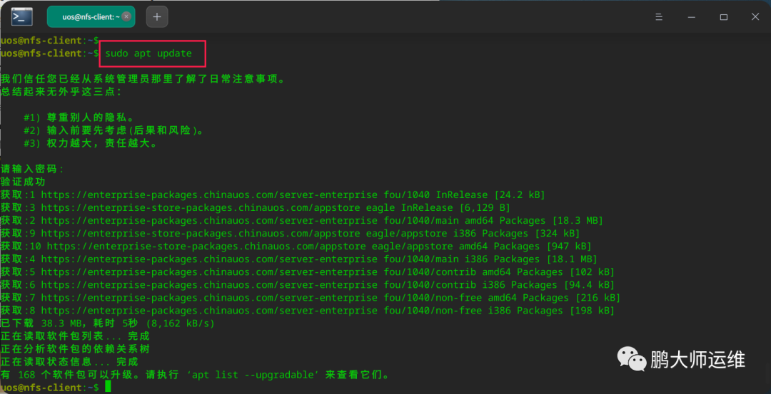 2、使用apt update更新客户端
