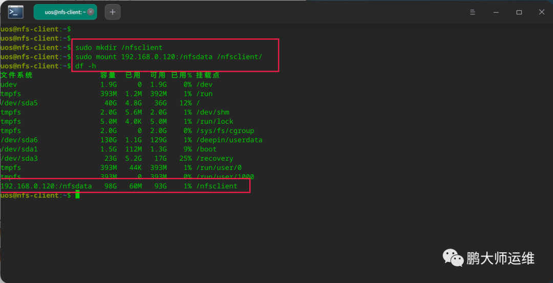 4、创建挂载点,并将nfs挂载查看