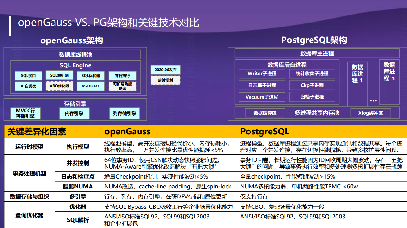 1、在CPU NUMA 多核的硬件发展趋势下,openGauss通过线程绑核,NUMA化数据结构改造,数据分 区和原子指令优化实现150W tpmc。