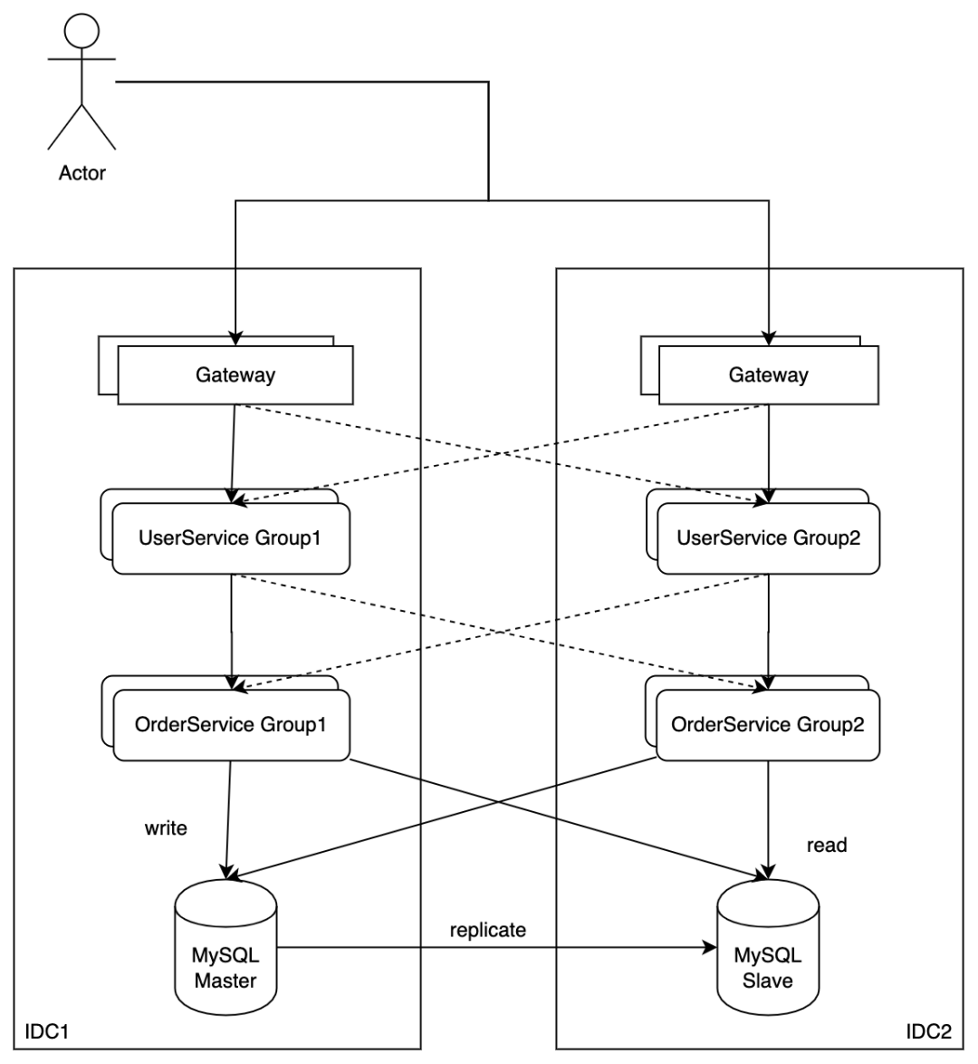 携程内部应用一般包含多个Group,Group是应用发布的最小单位,同时也是流量调度的单位。一个DR(容灾)组一般包含两个IDC,一个应用的多个Group会部署在DR组内的多个IDC,当某一个IDC出现故障时,迅速将流量切换到另一个IDC。其中核心应用多IDC部署,数据库跨IDC主备,流量调度层面也要支持跨IDC的管控。