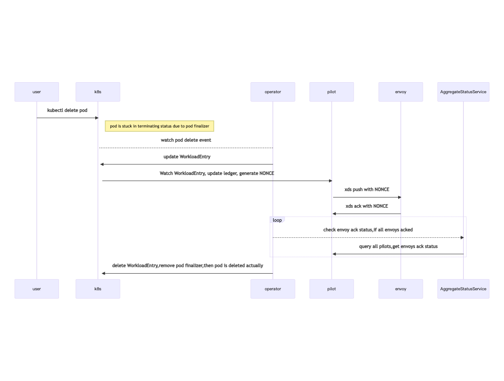 5)确认推送成功之后,Operator会去删掉WorkloadEntry,去除Pod finalizer,真正的删除Pod。