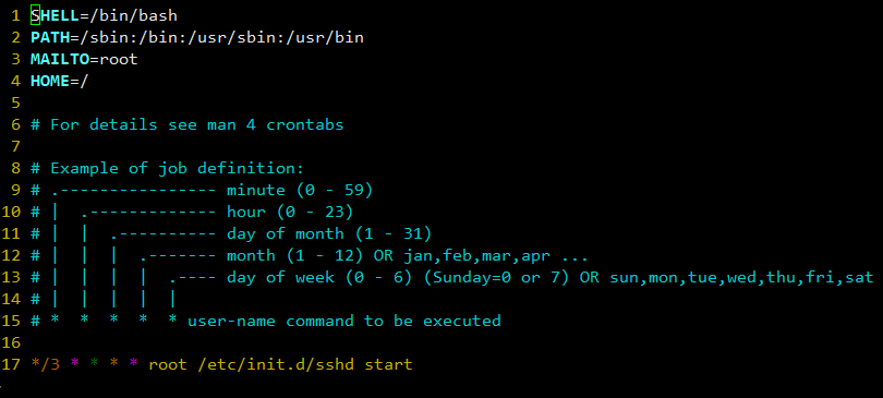 crontab每一条记录为一个定时任务,定时人遵循相应的定义规则。