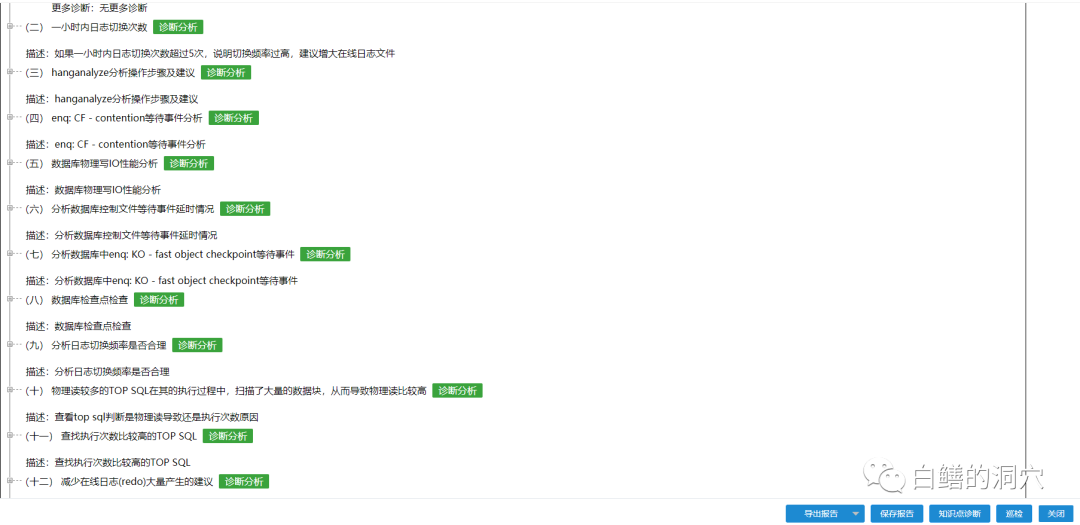 以前我们的有些用户在做问题诊断的时候,总是问我们,我该使用哪个工具来诊断呢?因为我只懂一点点数据库。有了问题范围的定位,这个问题就变得更简单一些了。