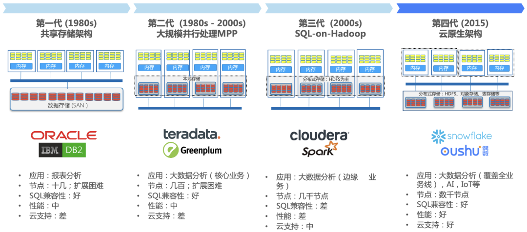 以 OushuDB 为例,实现了存算分离的云原生架构,并通过虚拟计算集群技术在数十万节点的超大规模集群上实现了高并发,保障事务支持,提供实时能力,一份数据再无数据孤岛。
