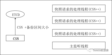 不是每次都写ETCD(Editable Text Configuration Daemon,分布式键值存储系统,用于共享配置、服务注册和查找),而是采用定期持久化到ETCD。每次写ETCD的CSN 要加上一个backup_step(100万),一旦GTM 出现故障,CSN 从ETCD 读取出来的值保证单调递增。当前GTM 只完成CSN++ ,可以支持200MB/s请求。GTM处理获取CSN消息和CSN++的消息,TCP协议栈消耗CPU 会非常严重,采用用户态协议栈提高GTM 单节点的处理能力。GTM 关键数据结构和线程,如下图所示。