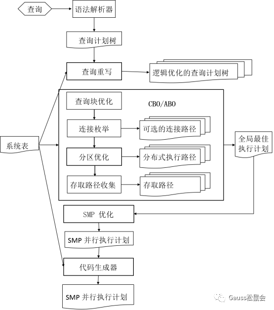 GaussDB 0 OLAP数据库优化器支持CBO(Cost Based Optimization,基于代价的查询优化)和ABO(基于机器学习的查询优化),根据代价和AI学习,会自动选择SMP(Symmetric Multi-Processing,对称多处理结构)、Join order、group算法、index等,GaussDB OLAP优化器整体架构如下图所示。