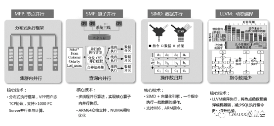 (2) 通过LLVM(Low Level Virtual Machine,一个编译器框架)编译执行、SIMD单指令多数据执行、算子并行执行和节点并行执行技术,提高复杂查询的性能。