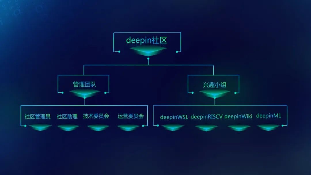 目前,深度社区组织架构由管理团队和兴趣小组两大部分组成,管理团队下设社区管理员、社区助理、技术委员会、运营委员会。小组分为固定兴趣小组和临时兴趣小组,将团结更多伙伴开展各项技术研究,壮大开源项目孵化能力。