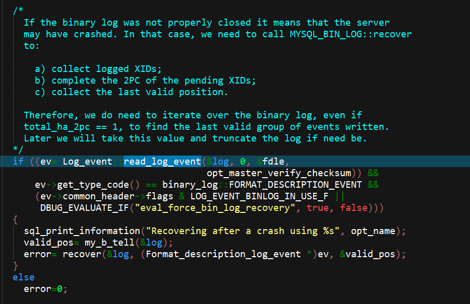 当binlog不正常关闭也就是数据库crash了,这时数据库调用MYSQL_BIN_LOG恢复至: