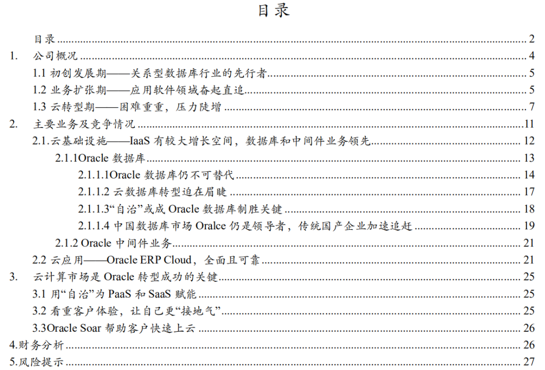 2) 研发成果不及预期。Oracle面临快速变化的技术革新和竞争局面,如果不能及时开发出差异化的产品,或许会导致落后对手,营业收入下滑。