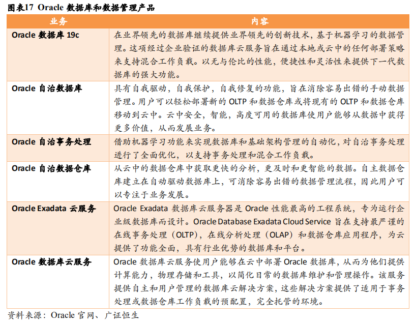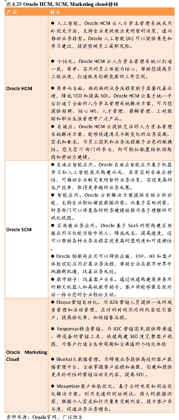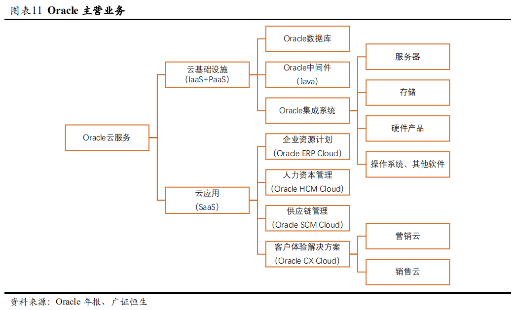 PaaS+SaaS一直是甲骨文的传统优势,在数据库领域,甲骨文的技术能力已经领先业界数十年,在SAAS领域,公司也提供了全面且丰富的产品线。