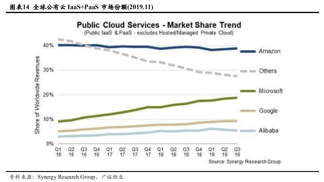 自2018年6月起,Oracle开始改变报告其季度财务业绩的方式,将其云计算业务与其许可支持业务放在一起。根据2019年Synergy Research Group的调研,IaaS公有云领域主要还是被亚马逊、微软、谷歌、阿里巴巴等公司占领。另外,资本开支不足导致Oracle无法在IaaS与其他对手竞争,主要是Oracle没有像微软、亚马逊甚至阿里那样有强大的现金奶牛业务支撑,原有的现金奶牛数据库业务的绝对统治地位,也在开源数据库崛起后逐渐动摇。