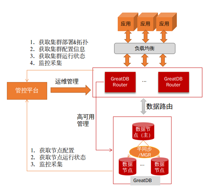 GreatDB集中式集群支持基于半同步和MGR两种方式的高可靠部署。