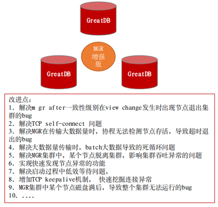 基于MGR部署,万里数据库对官方MGR进行了大量的修补与增强,累计已修改bug50+,在数据一致性、吞吐稳定性、集群可靠性等方面做了大幅改进提升,并对金融级应用等强一致场景做了针对性优化,增加了地理标签功能和全新的流控机制。