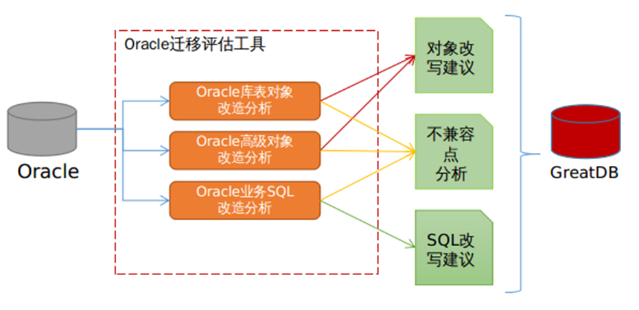 配套GreatDTS迁移评估工具,可提升Oracle迁移改造过程中数据采集、评估、对象自动转换3个环节的便捷度、正确度与效率。对数据库评估难度最高的改造环节,GreatDTS提供SQL与对象不兼容点列表参考,增加改造工作量评估的准确性,提高改造效率。
