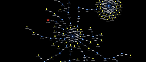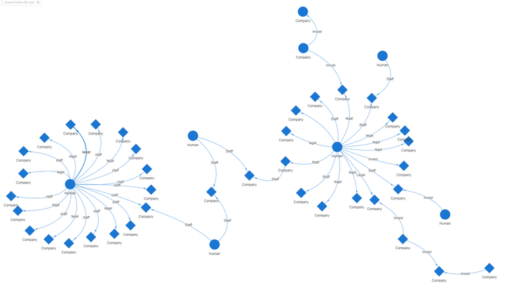 上图显示,在嬴图高可视化平台上,通过图数据库的前端界面可以快速且直观地查找和定位企业的最终受益人。图中所示的最终受益人(大股东)与被查询公司(起点)间存在有4层间隔,通过多个公司业务交叉结构,有意无意地隐藏了其直接控股关系。