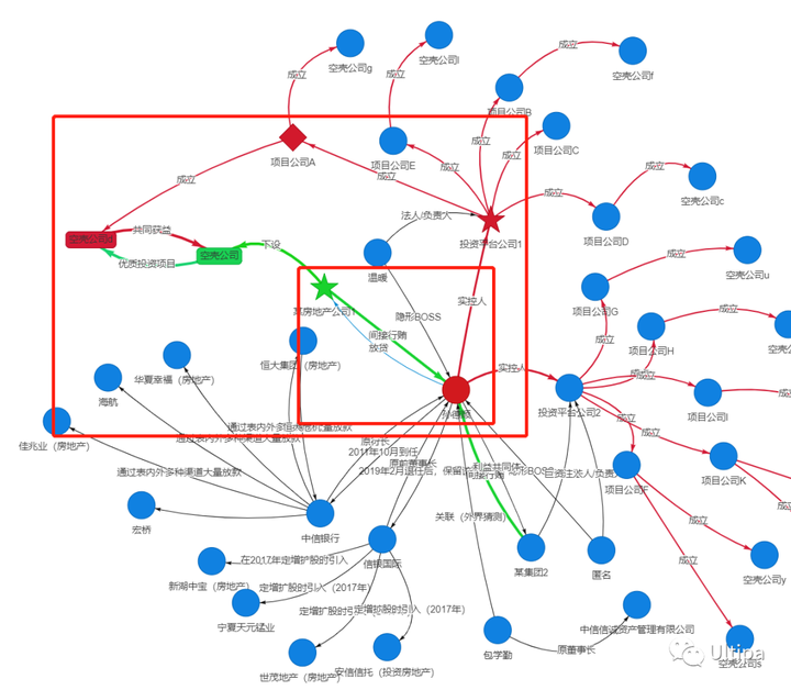 从技术上讲,深图遍历(deep graph traversal,DGT)不是一个应用场景,它是图计算系统的独特功能,通过嬴图数据库的实时DGT功能,不仅能快速穿透并识别出UBO(最终受益人),还能以AI白盒自动化的方式解释图上的整体结构。诸如以现实场景为例,原中信银行行长孙德顺利用开设多个“影子公司”的方式,借助金融手段来完成利益输送。